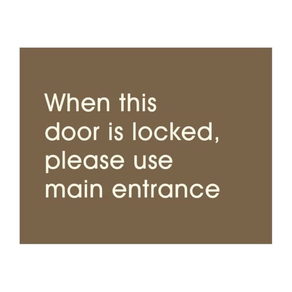 Inform guests and visitors how to enter your hotel with informational entrance signs. Text on sign in digitally printed and comes with foam tape on the back for easy installation. For interior and exterior use.