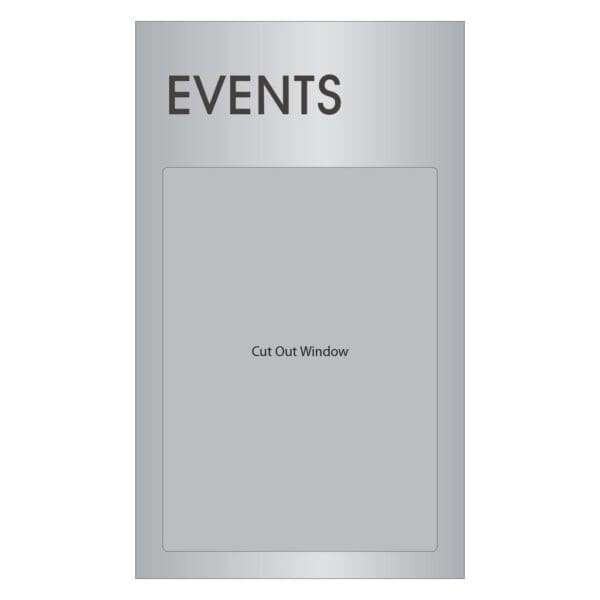 Brand-approved meeting room ID features flat copy and a cut out window for a user-generated paper insert. Signs come with foam tape on the back for easy mounting.