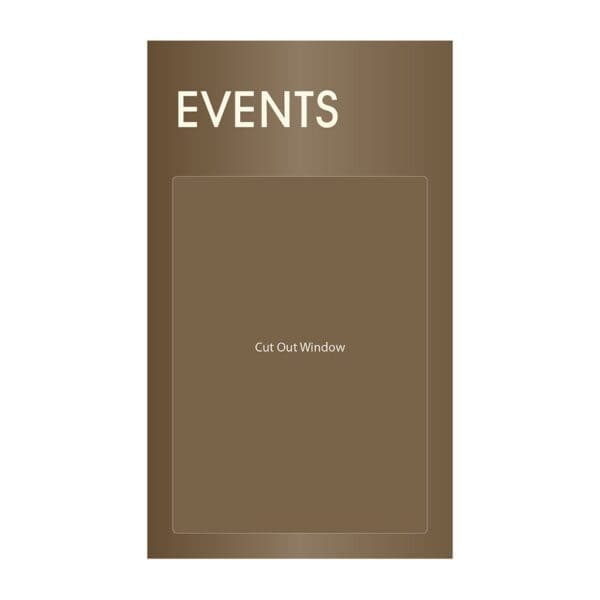 Brand-approved meeting room ID features flat copy and a cut out window for a user-generated paper insert. Signs come with foam tape on the back for easy mounting.
