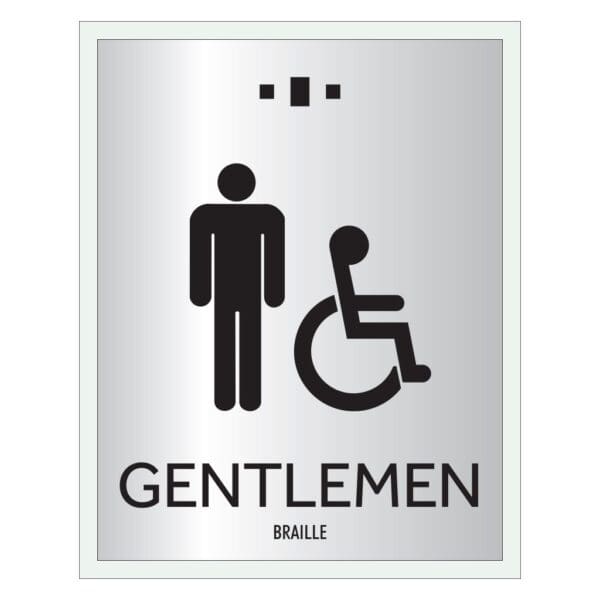 Mark each bathroom with a restroom identification sign. Restroom signs feature raised text, symbols and Grade 2 Braille. Signs come with foam tape on back for easy mounting. For interior use only.