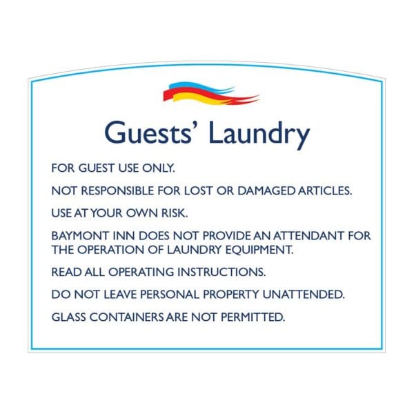 Keep guests and employees safe and informed with Guest Laundry Rules sign. Text on sign is printed flat and comes with foam tape in the back for easy mounting.