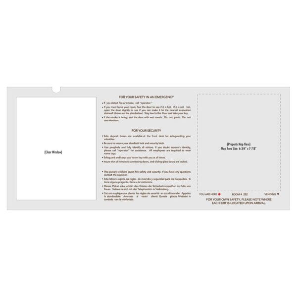 Keep guests safe during an emergency with Guestroom Evacuation Plan. Signs use flat copy and comes with foam tape for easy mounting. For interior use only.
