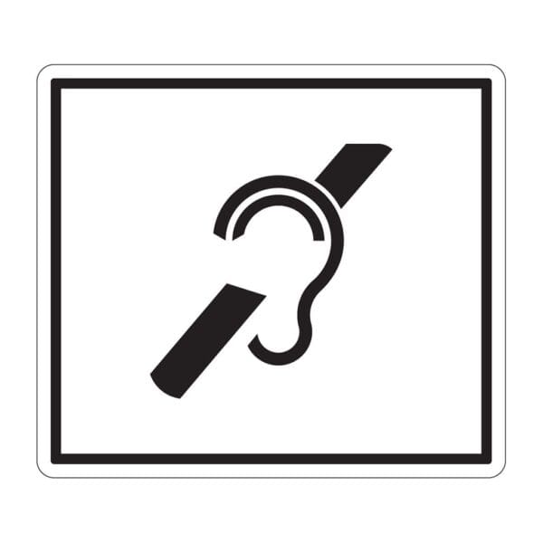 Self-adhesive decal with hearing impaired symbol. For interior and exterior use.