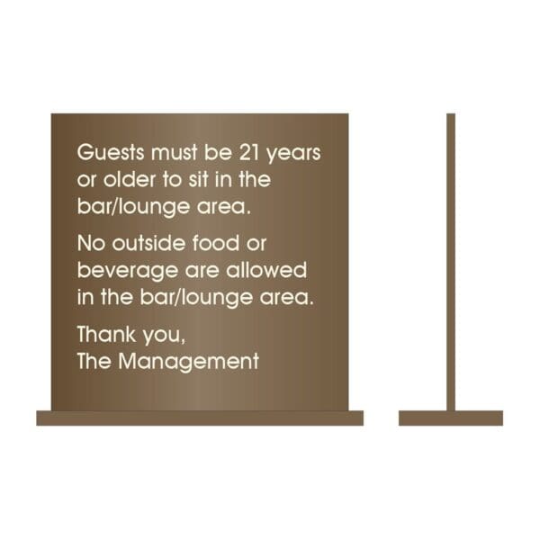 Place hotel bar informational on bar counter for all guests to see. Sign comes with a counter stand and is for interior use only.