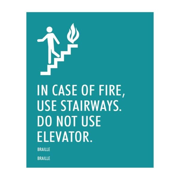 Help guests navigate your hotel in an emergency with In Case Of Fire Stair signs. Signs are ADA-compliant, featuring tactile copy, braille and foam tape on the back for easy mounting. Signs are made with vandal-proof photopolyer and are for interior and exterior use.