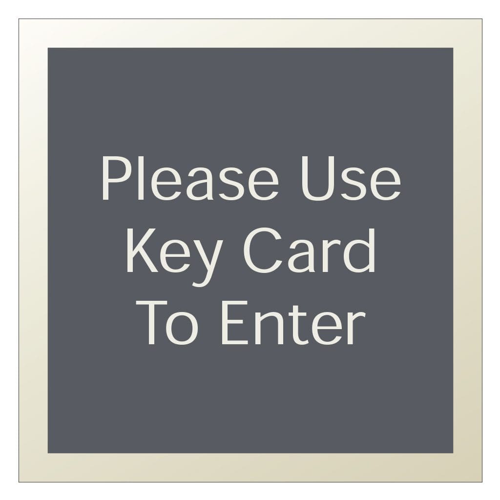 Inform guests when and where they have to use their key card to gain entry. Text on sign in digitally printed and sign comes with foam tape on the back for easy installation.