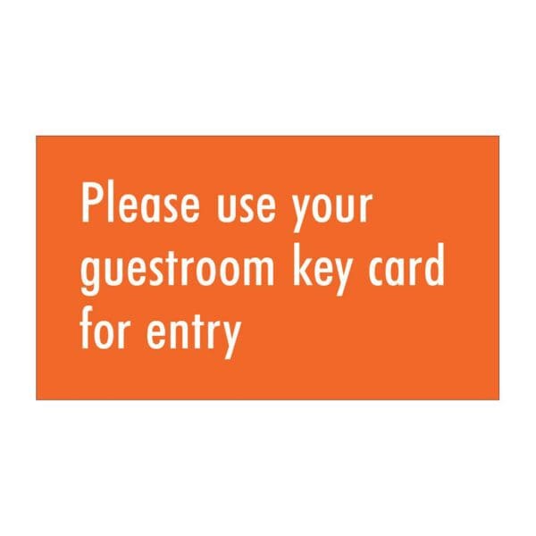 Inform guests when and where they have to use their key card to gain entry. Text on sign in digitally printed and comes with foam tape on the back for easy installation. For interior and exterior use.