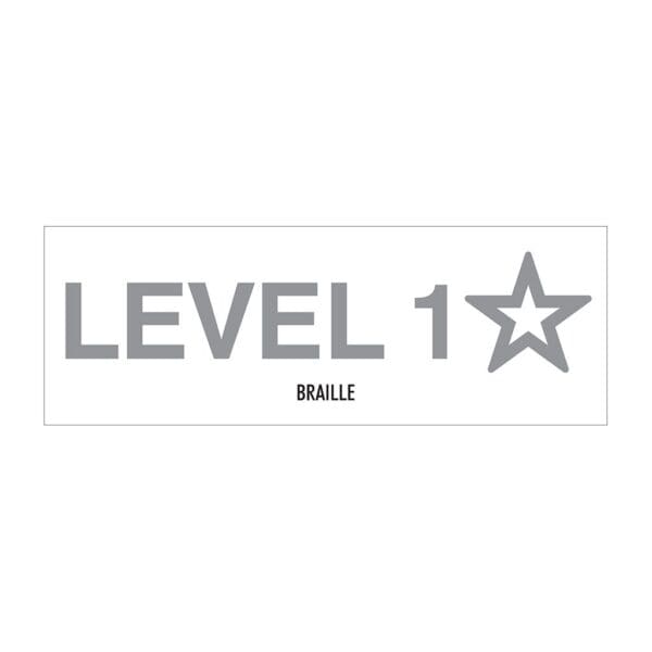 Denote the floors of your hotel with numbered Level ID signs, featuring raised text and Grade 2 braille for ADA compliance. Signs come with foam tape on back for easy mounting and are made with vandal-proof photopolymer material. For interior and exterior use.