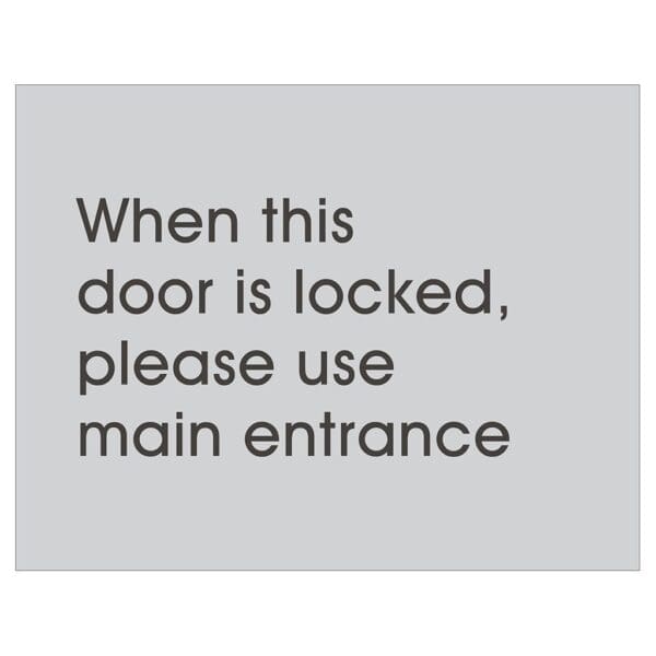 Inform guests when to use the main entrance of your hotel. Text on sign in digitally printed and comes with foam tape on the back for easy installation. For interior and exterior use.