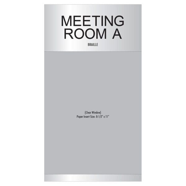 User-generated paper insert slides directly into brand-approved meeting room ID sign. Sign comes with foam tape for mounting and is for interior use only.