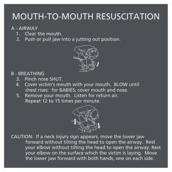 Keep guest safe with brand-approved Mouth to Mouth Informational signs. Text on sign is flat and comes with hardware for mounting.