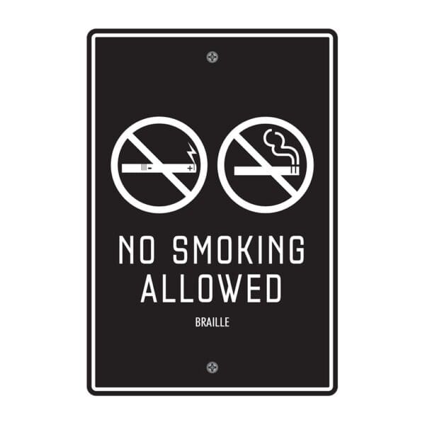 Mark areas of your hotel as smoke-free and/or electronic smoke-free with no smoking signs. No Smoking signs are ADA-Compliant, featuring tactile copy and braille, and come with mounting hardware.