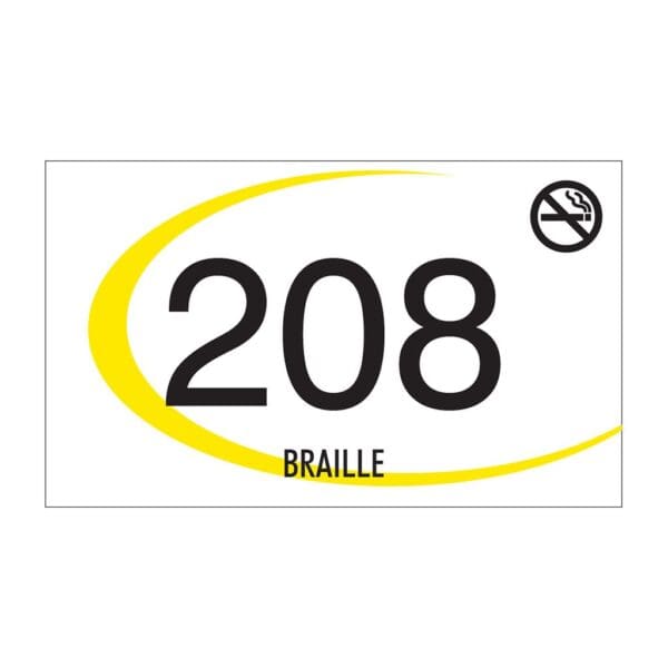 Establish an easy-to-follow room numbering system in your hotel with brand-approved room number signs. Each sign features raised text, symbols and Grade 2 Braille for ADA-compliance. Non-Smoking Room Number Signs come with a No Smoking symbol on front and foam tape on back for easy mounting. For interior use only.