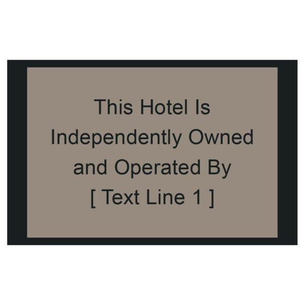 Specify the owner and operator of your hotel. Sign features flat copy and comes with foam tape on the back for east mounting.