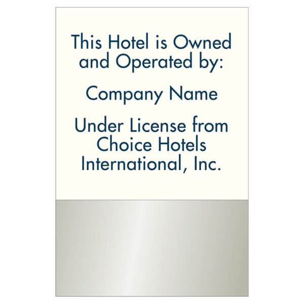 Specify the owner and operator of your hotel. Sign features flat copy and comes with foam tape on the back for east mounting.