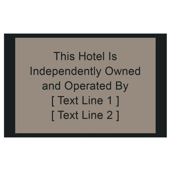 Specify the owner and operator of your hotel. Sign features flat copy and comes with foam tape on the back for east mounting.