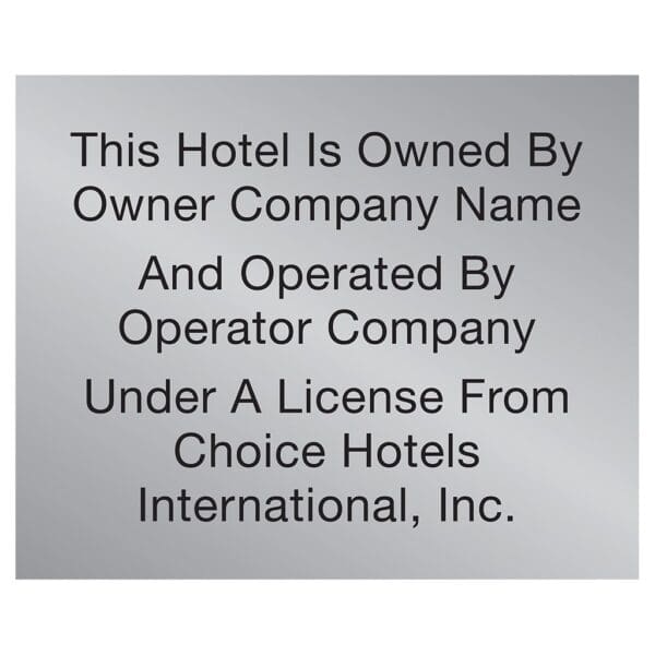 Specify the owner and operator of your hotel. Sign features flat copy and comes with foam tape on the back for east mounting.