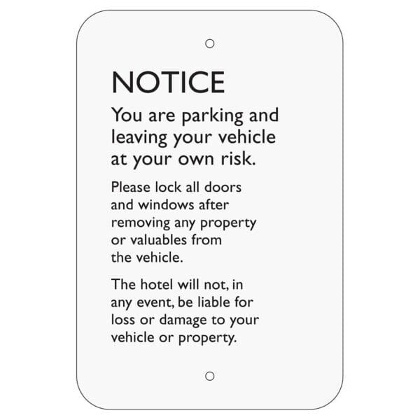 Brand-approved Parking signs come with flat text and ensure your guests are complying with hotel parking policies. Sign comes with holes for post mounting. For exterior use only.