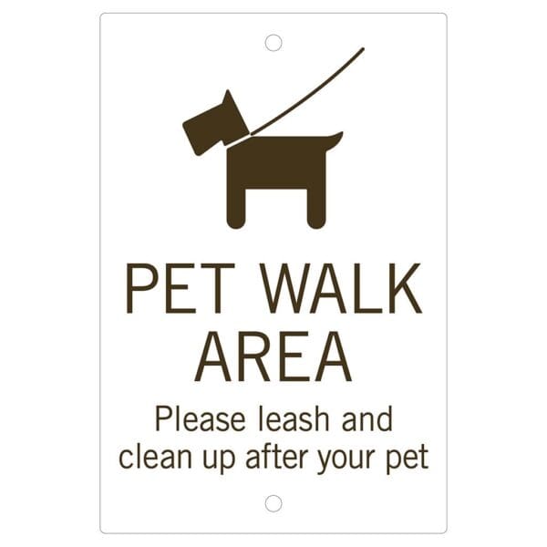 Brand-approved Pet Area signs are made of aluminum and come with flat text to ensure your guests are complying with hotel parking policies. Sign comes with holes for post mounting and are for exterior use only.