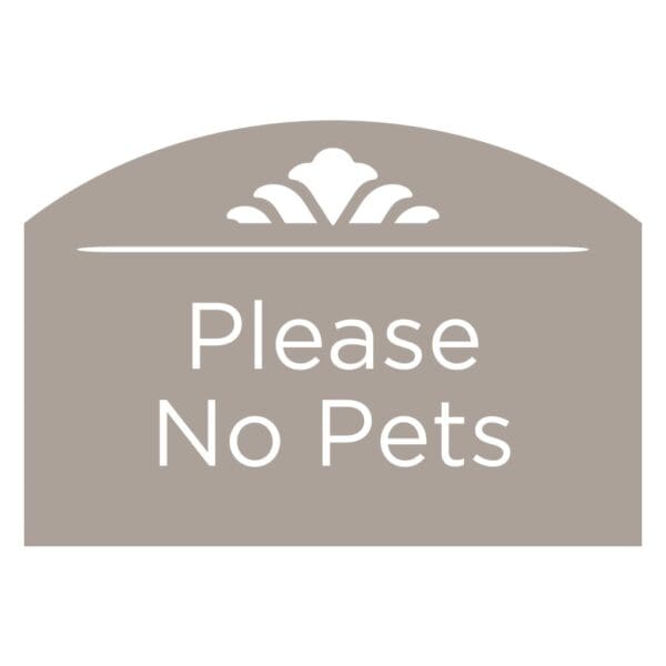 Keep customers informed on hotel policies with Please, No Pets signs. Text and symbols are flat and sign mounts easily with foam tape. For interior and exterior use.