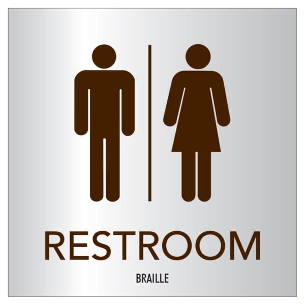 Mark each bathroom with a restroom identification sign. Restroom signs feature raised text, symbols and Grade 2 Braille. Signs come with foam tape on back for easy mounting.