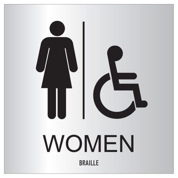 Mark each bathroom with a restroom identification sign. Restroom signs feature raised text, symbols, Grade 2 Braille and come with foam tape on the back for easy installation. Interior use only.