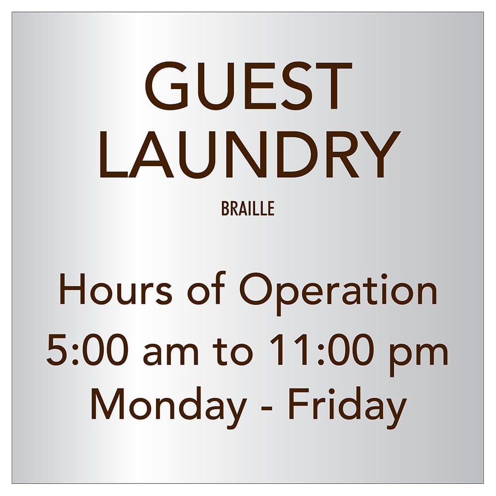 Room identification signs are made with tactile letters and Grade 2 Braille for ADA compliance. Every sign uses easily identifiable words and phrases to make wayfinding easy for guests. Comes with foam tape on the back for easy mounting.