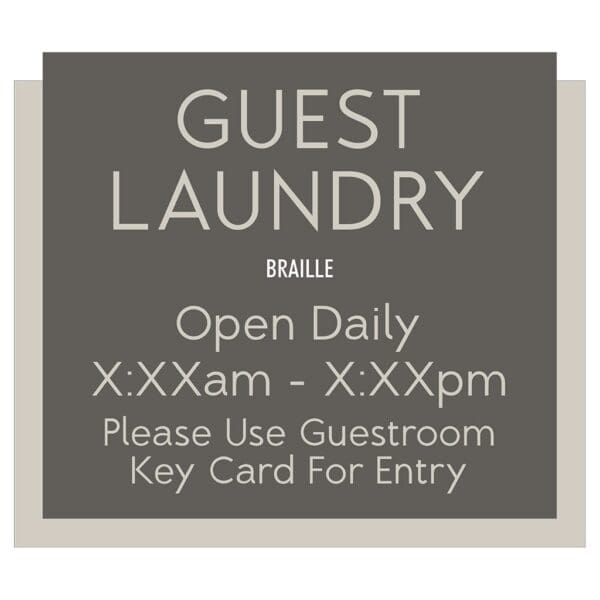 Room identification signs are made with tactile letters and Grade 2 Braille for ADA compliance. Every sign uses easily identifiable words and phrases to make wayfinding easy for guests. Signs are made with vandal-proof photopolymer for exterior use. Comes with foam tape on the back for easy mounting.