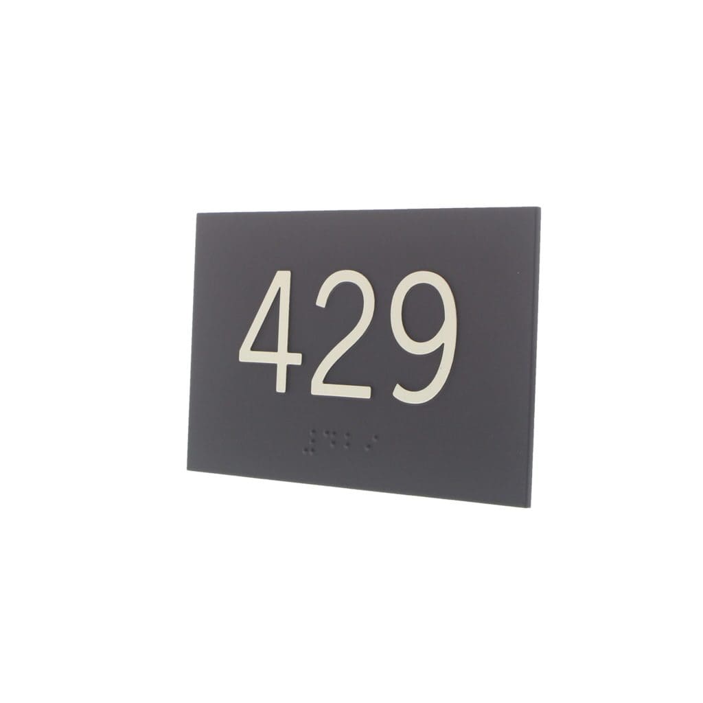 Establish an easy-to-follow room numbering system in your hotel with room number signs. Each sign features raised text, symbols and Grade 2 Braille. Signs come with foam tape on back for easy mounting.