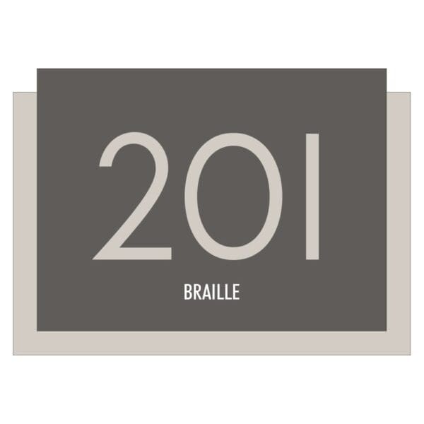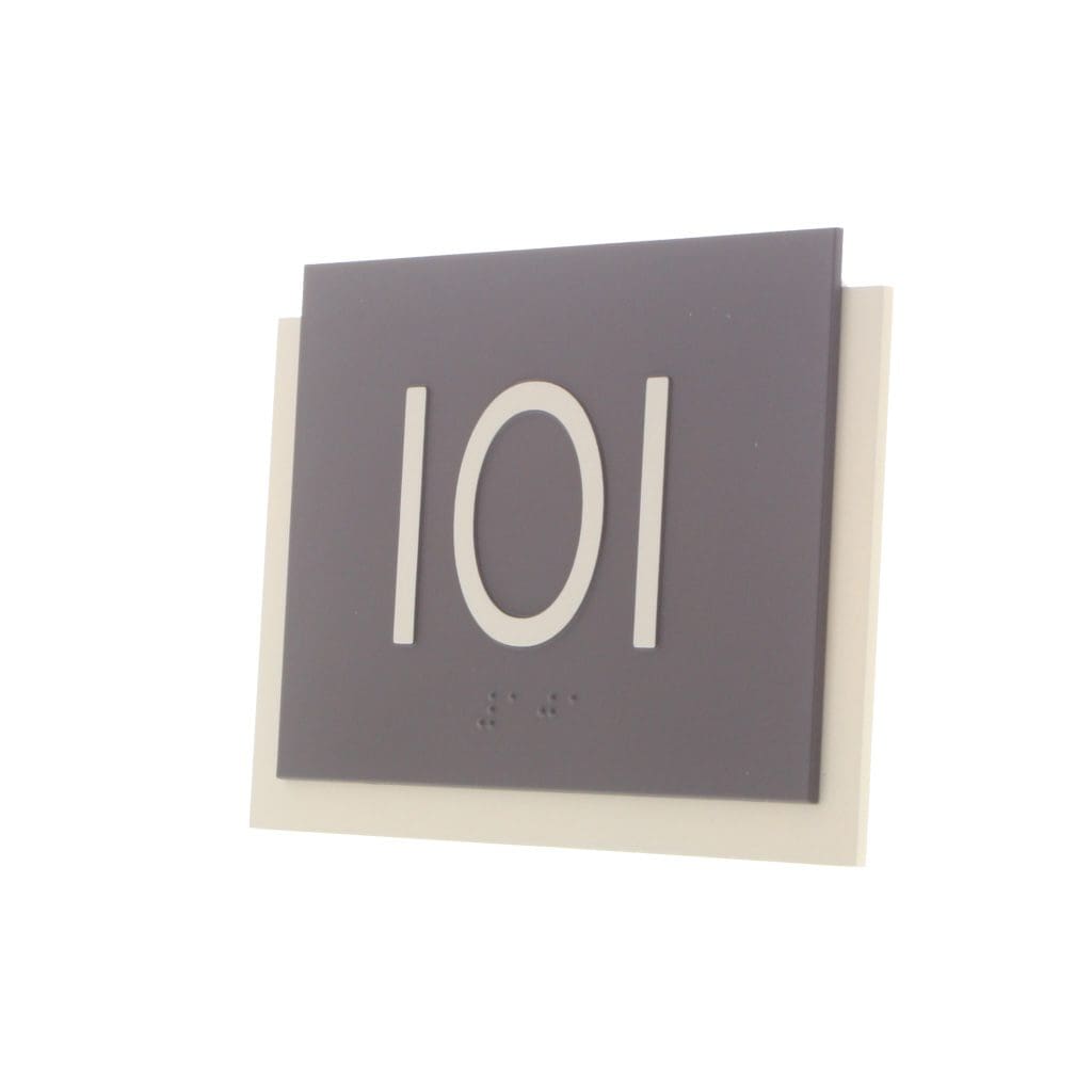 Establish an easy-to-follow room numbering system in your hotel with room number signs. Each sign features text, symbols, grade 2 braille, and comes with foam tape on the back for mounting.