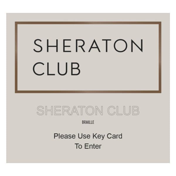 Room ID Sign denoting the Sheraton Club. Sign is ADA-Compliant, featuring tactile copy, braille and foam tape on the back the easy mounting.