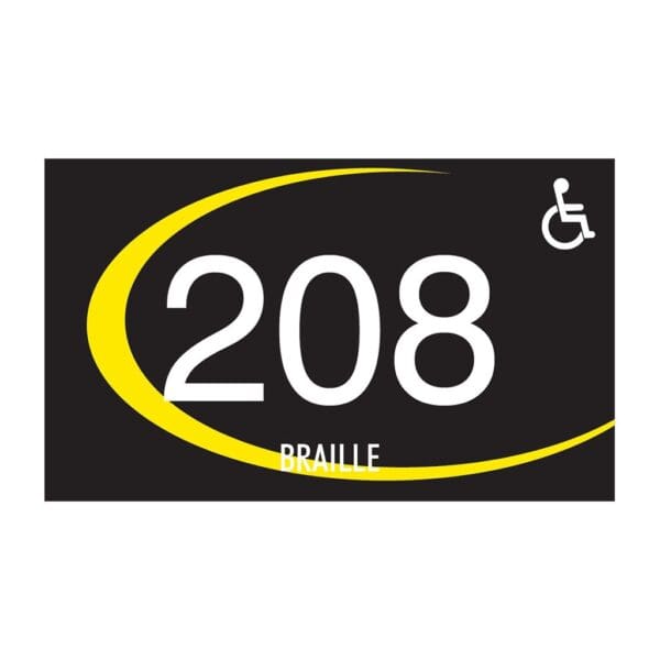 Establish an easy-to-follow room numbering system in your hotel with brand-approved room number signs. Each sign features raised text, symbols and Grade 2 Braille for ADA-compliance. Smoking/Accessible Room Number Signs come with an Accessible symbol on the front and foam tape on back for easy mounting. For interior use only.