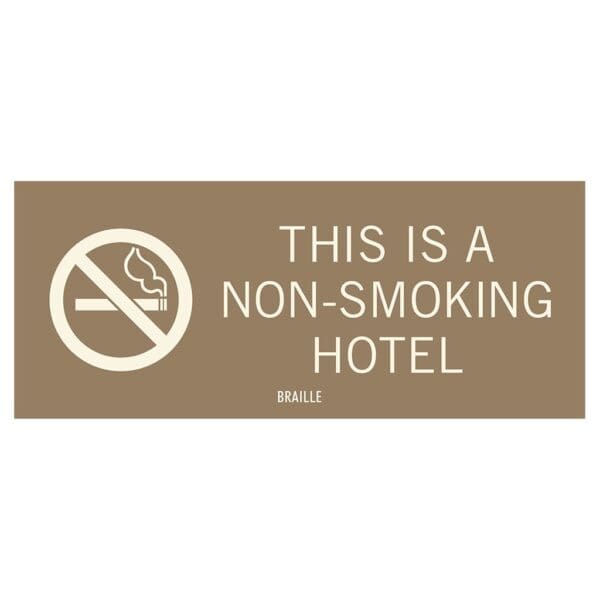 Mark areas of your hotel as smoke-free with no smoking signs. Signs are ada-compliant, featuring raised text and braille and come with foam tape on the back for mounting. Made with vandal-proof photopolymer for interior and exterior use.