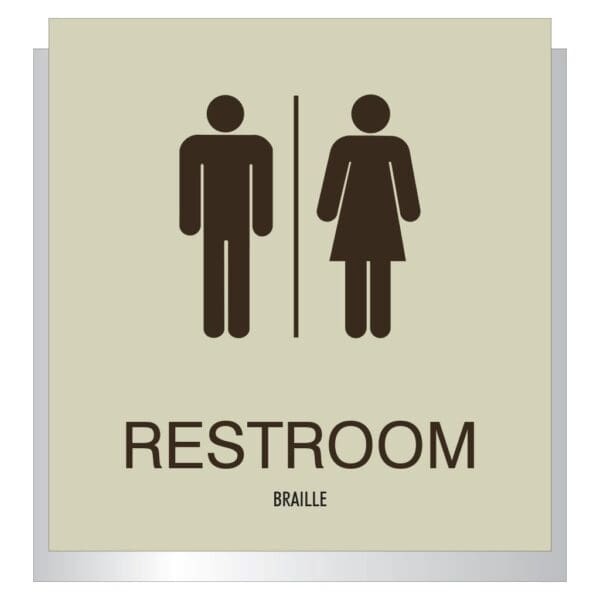 Mark each bathroom with a restroom identification sign. Restroom signs feature raised text, symbols and Grade 2 Braille. Signs come with foam tape on back for easy mounting.