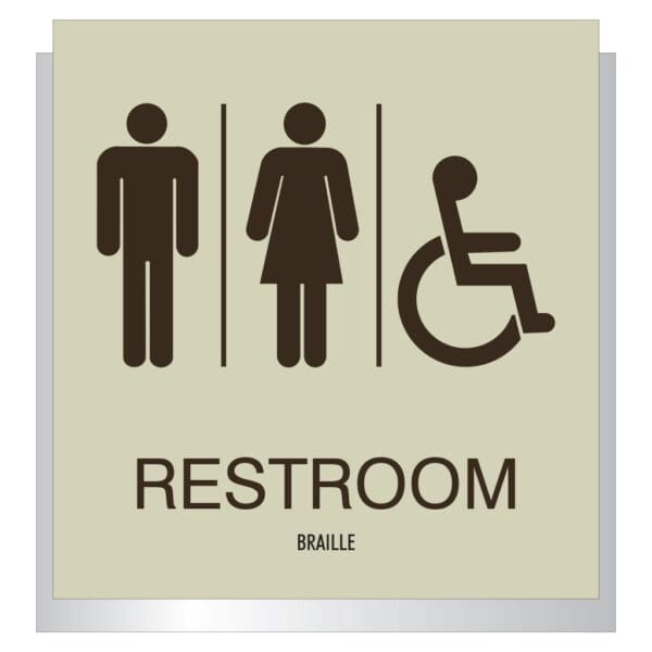 Mark each bathroom with a restroom identification sign. Restroom signs feature raised text, symbols and Grade 2 Braille. Signs come with foam tape on back for easy mounting.