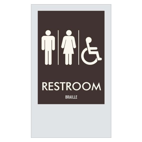 Mark each bathroom with a restroom identification sign. Restroom signs feature raised text, symbols and Grade 2 Braille. Signs come with foam tape on back for easy mounting.