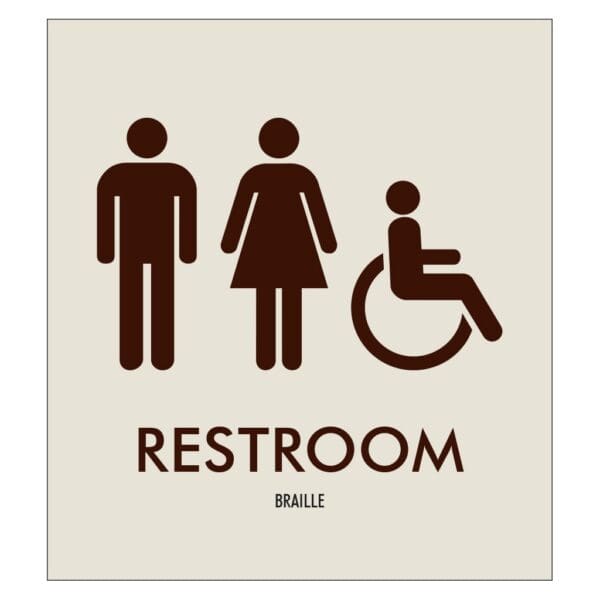 Mark each bathroom with a restroom identification sign. Restroom signs feature raised text, symbols and Grade 2 Braille. Signs come with foam tape on back for easy mounting.
