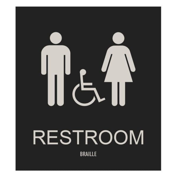 Mark each bathroom with a restroom identification sign. Restroom signs feature raised text, symbols and Grade 2 Braille. Signs come with foam tape on back for easy mounting.