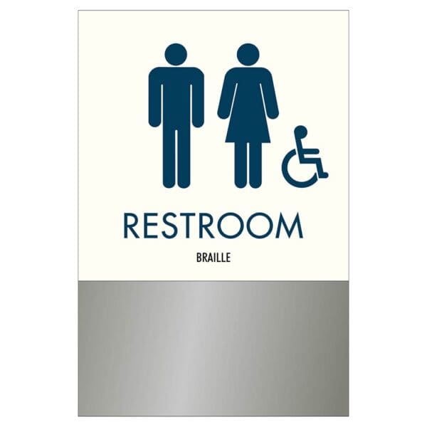 Mark each bathroom with a restroom identification sign. Restroom signs feature raised text, symbols and Grade 2 Braille. Signs come with foam tape on back for easy mounting.