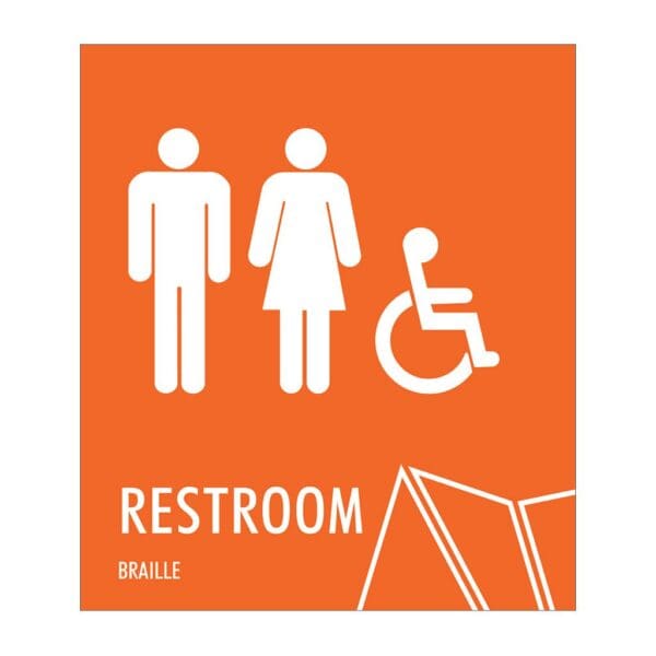 Restroom ID, ADA compliant, photopolymer, raised copy, foam tape. Mark each bathroom with a restroom identification sign. Restroom signs feature raised text, symbols and Grade 2 Braille. Signs come with foam tape on back for easy mounting and are made with vandal-proof photopolymer. For interior and exterior use.