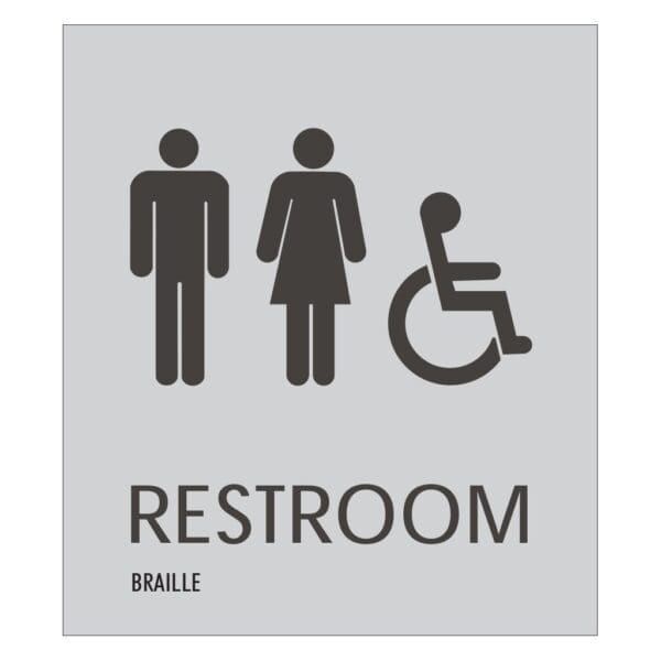 Mark each bathroom with a restroom identification sign. Restroom signs feature raised text, symbols and Grade 2 Braille. Signs are made with vandal-proof photopolymer material for exterior use and come with foam tape on the back for easy mounting.