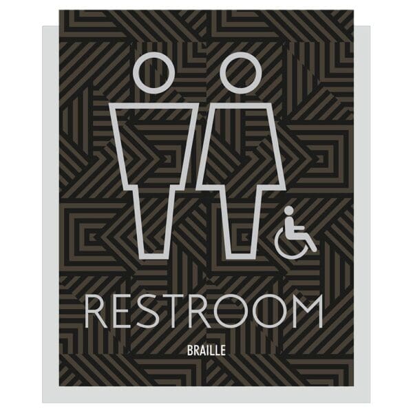 Mark each bathroom with a restroom identification sign. Restroom signs feature raised text, symbols and Grade 2 Braille. Comes with backer and foam tape on back for easy mounting. For interior use only.