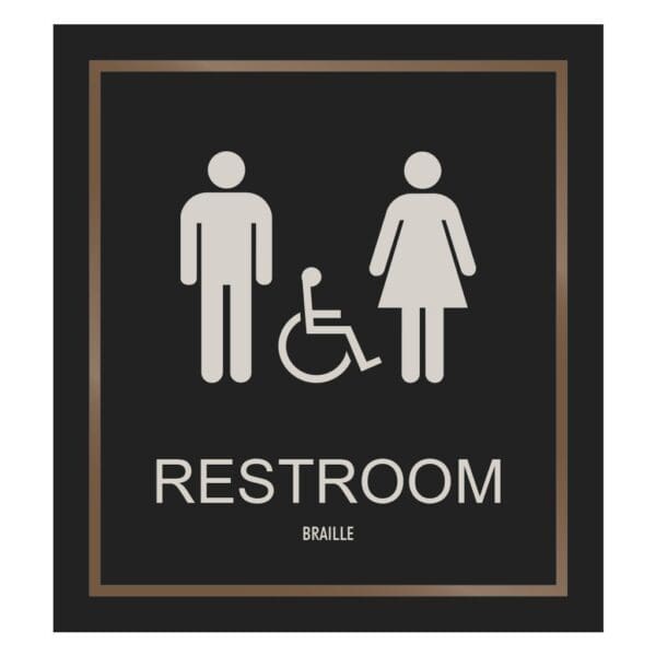 Mark each bathroom with a restroom identification sign. Restroom signs feature raised text, symbols and Grade 2 Braille. Signs come with foam tape on back for easy mounting. For interior and exterior use.