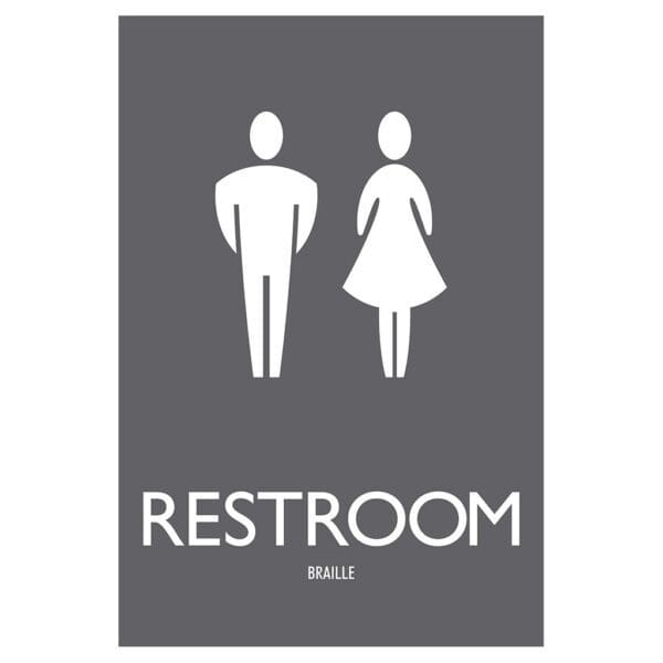 Mark each bathroom with a restroom identification sign. Restroom signs feature raised text, symbols, Grade 2 Braille and come with foam tape on the back for easy installation. Signs are made with vandal-proof photopolymer for exterior use.