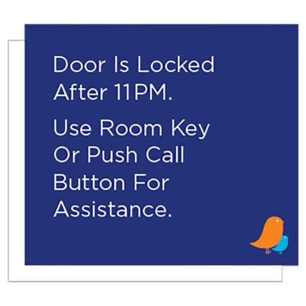 Informational signs use text and symbols to display need to know information quickly and easily to guests and employees. Comes with foam tape on back for easy mounting. Text on sign is digitally printed to comply with ADA Standards.