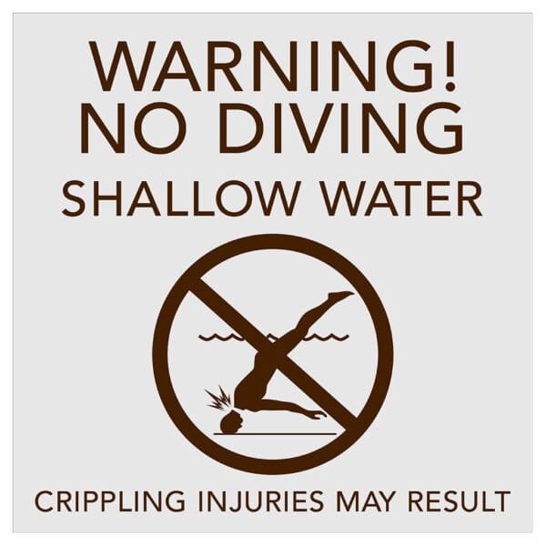 Brand-Approved Warning! No Diving Signs ensure that your guests remain safe and informed while using the hotel pool. Text on sign is flat and is for exterior use only. See below to select between wall mount or a post/fence mount (hardware provided).