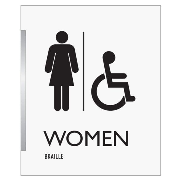 Mark each bathroom with a restroom identification sign. Restroom signs feature raised text, symbols and Grade 2 Braille. Signs come with foam tape on back for easy mounting.