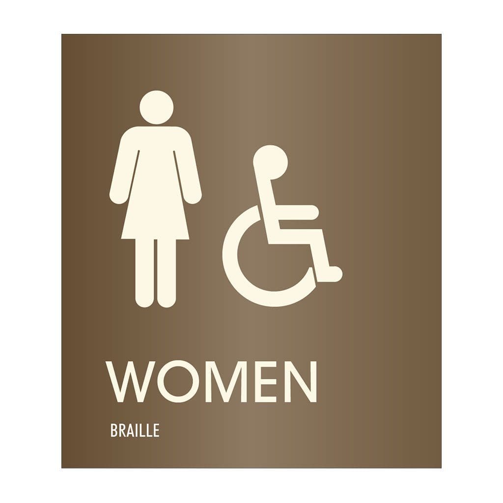 Mark each bathroom with a restroom identification sign. Restroom signs feature raised text, symbols and Grade 2 Braille. Signs come with foam tape on back for easy mounting. For interior use.