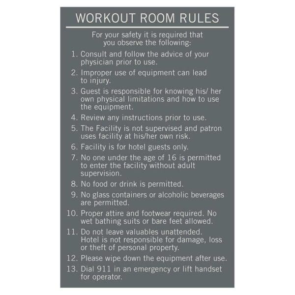 Informational signs use text and symbols to display need to know information quickly and easily to guests and employees. Comes with foam tape on back for easy mounting. This sign is made with vandal-proof photopolymer for interior use.