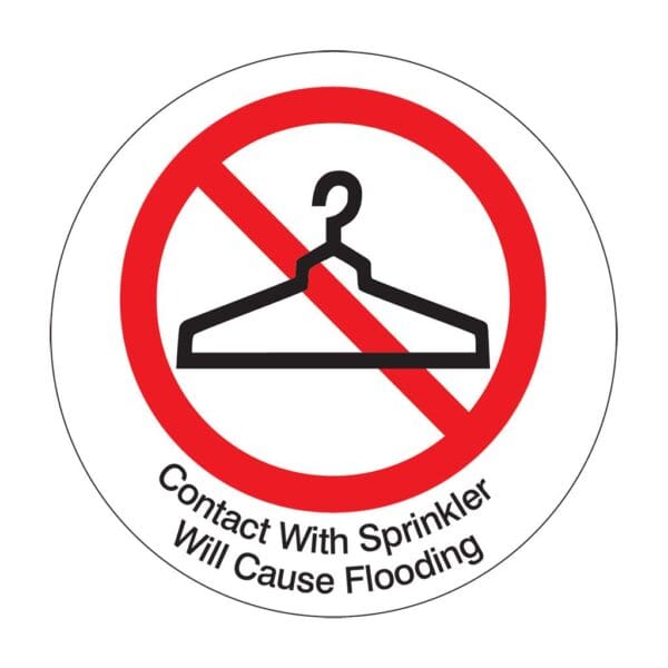 Sprinkler warning signs feature text and “no hanger” symbol. 20 mil White Polystyrene for interior use only.